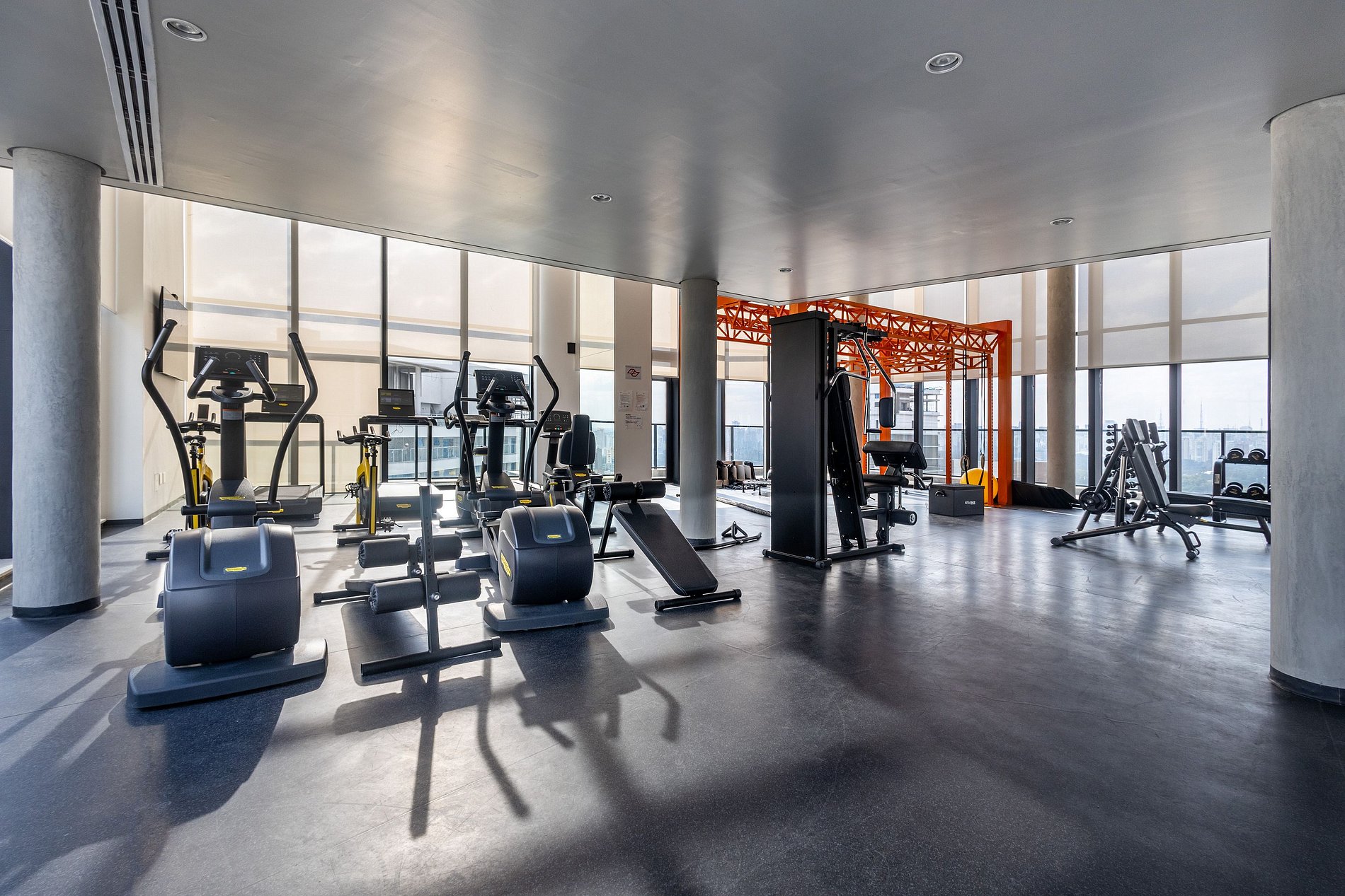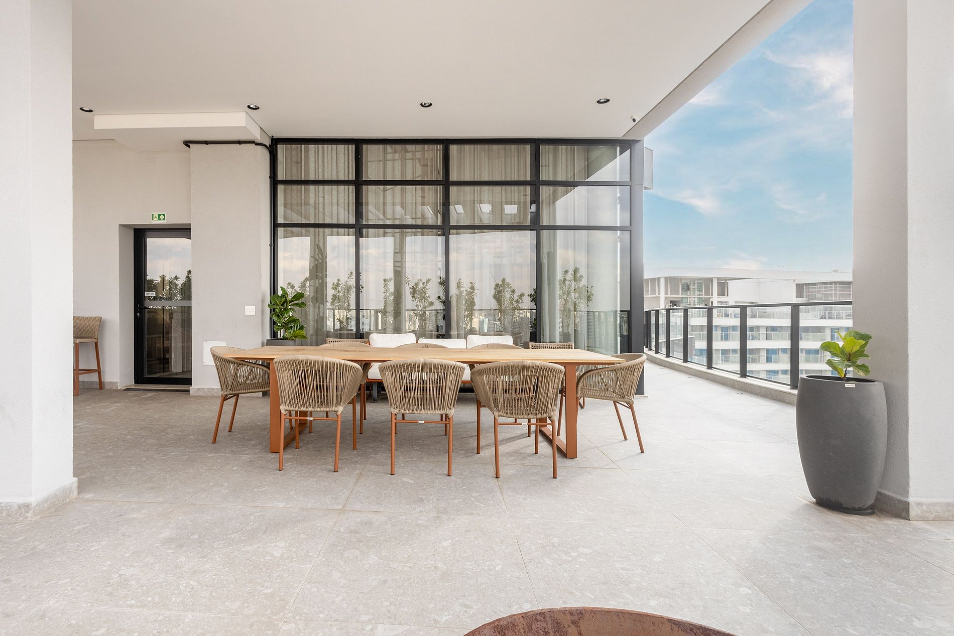 Curta a vista da cidade no rooftop do prédio