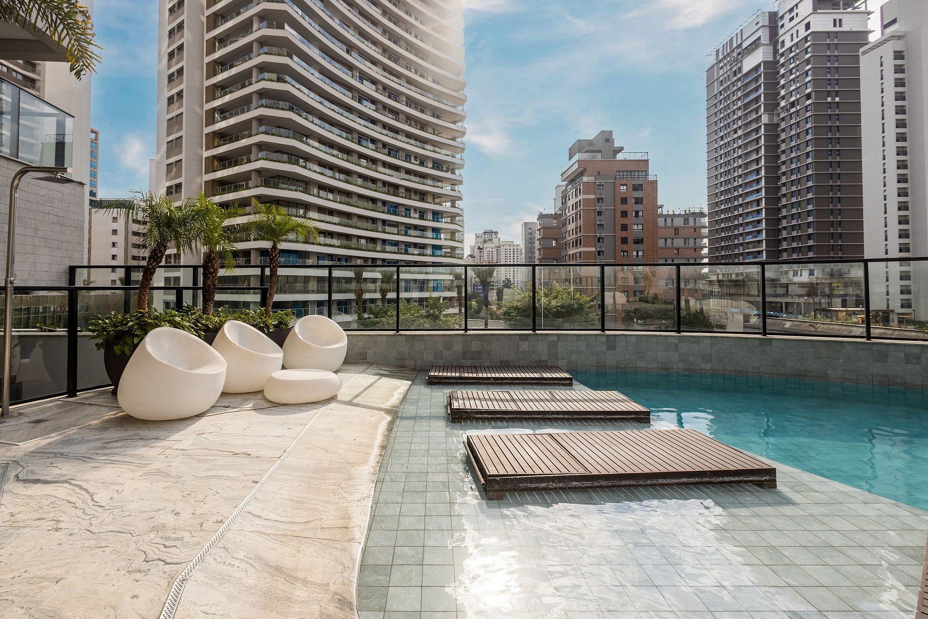 Local com portaria 24h, segurança, acesso por elevadores e áreas de lazer com: piscina, academia e lavanderia compartilhada.