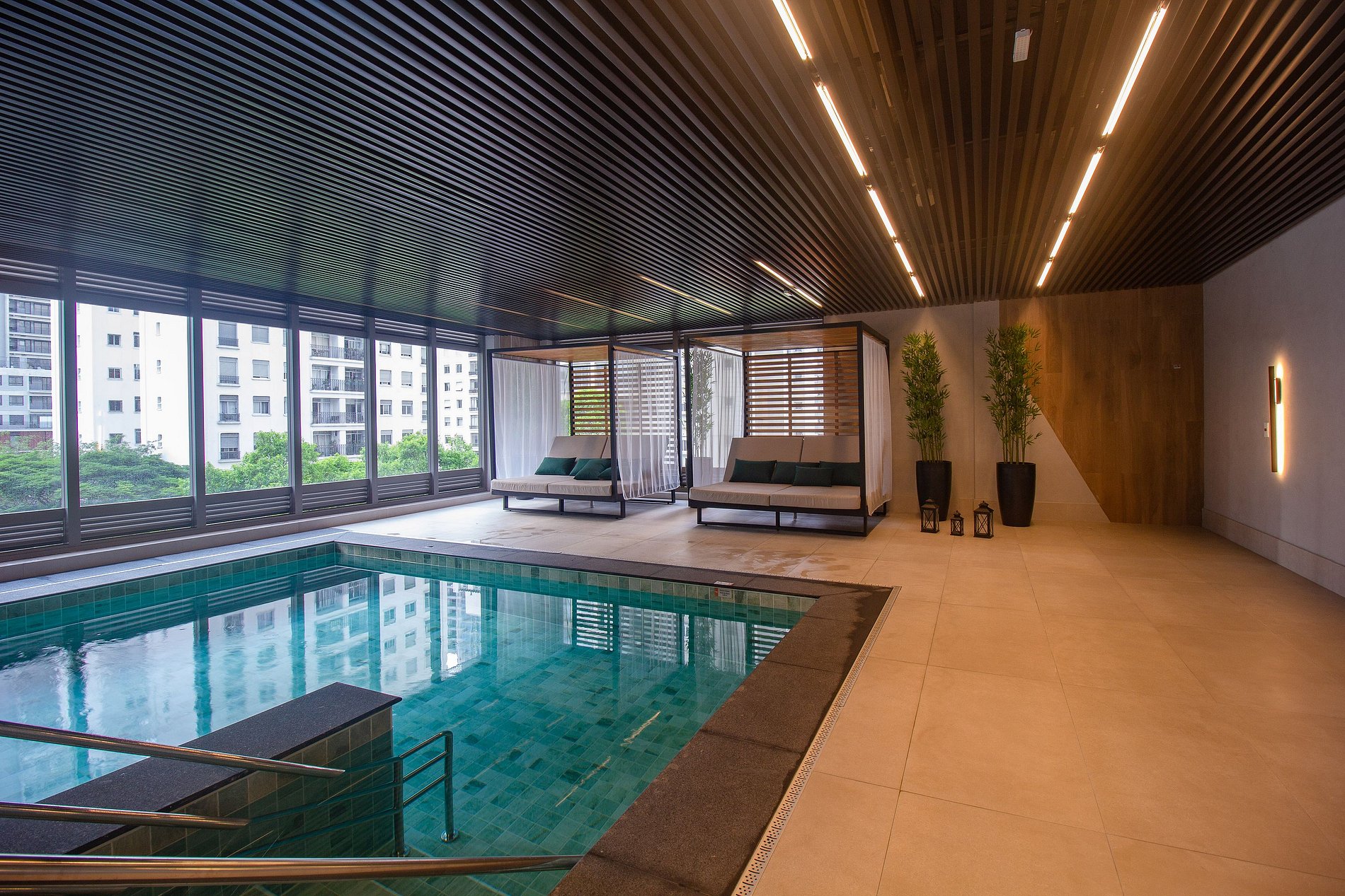 O Condomínio Air Brooklin oferece uma experiência residencial de alto padrão em São Paulo, com foco total em conforto e lazer completo. Sua estrutura interna é rica, disponibilizando piscina aquecida no rooftop com vistas panorâmicas, academia (Cia Athletica), espaços de trabalho (coworking), salão de jogos e brinquedoteca, além de serviços essenciais como lavanderia interna e portaria 24 horas.